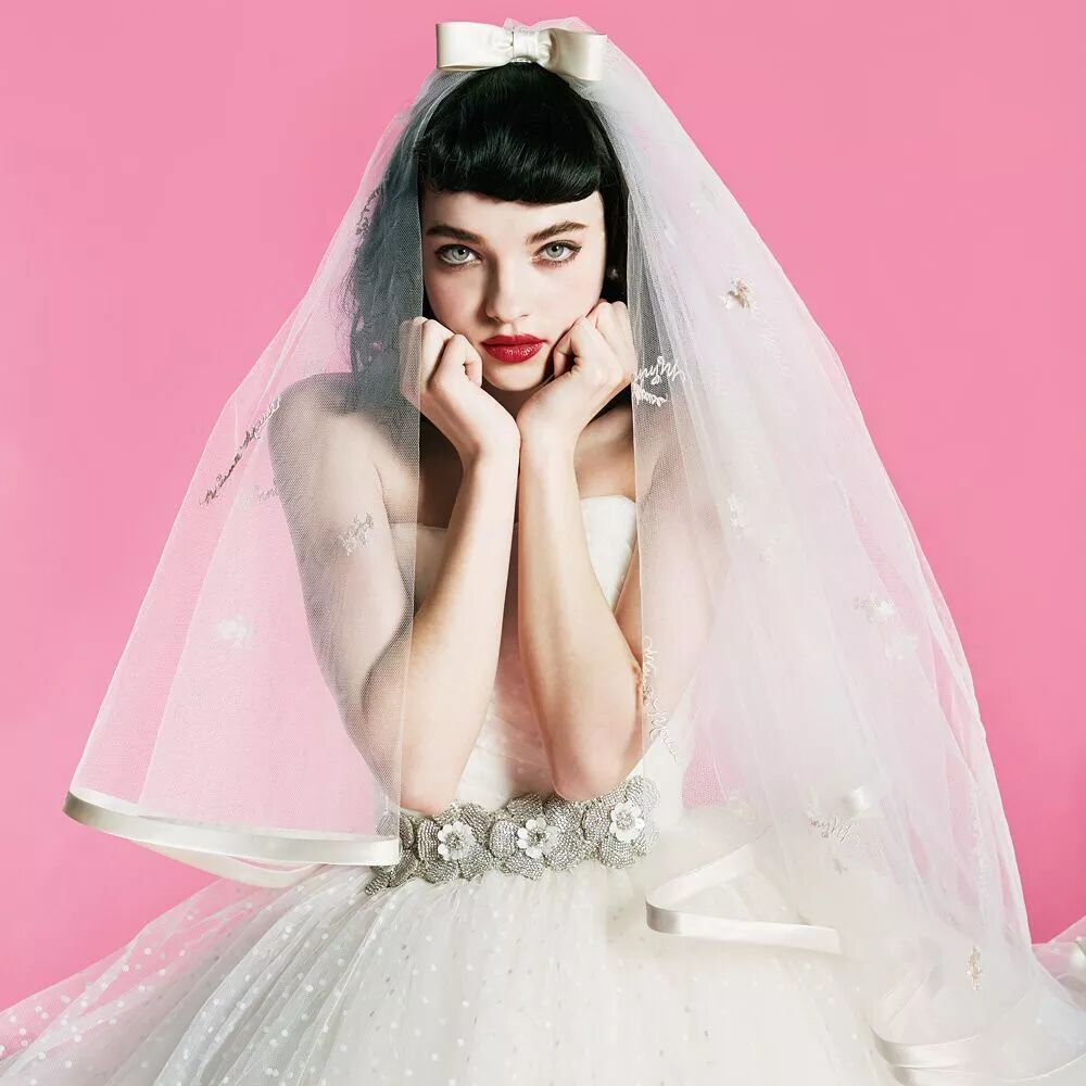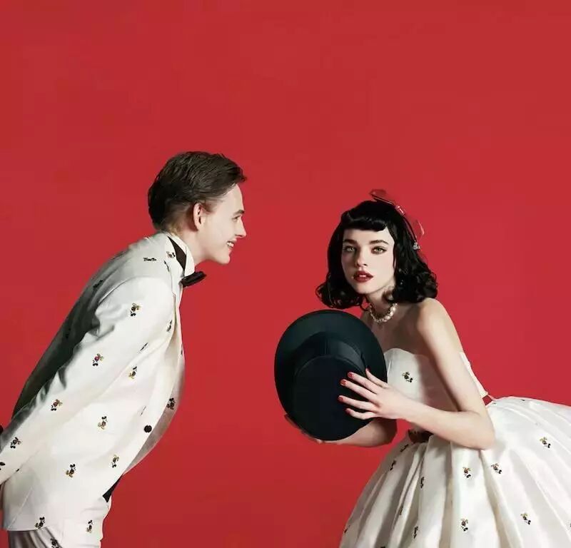 不想顶着大发饰可以戴上蝴蝶结头纱或小礼帽,纺纱蕾丝元素完美结合,花卉、配上红色米奇发饰,布满了公主风格。要着重表现婚纱的造型和细节。甜美可人